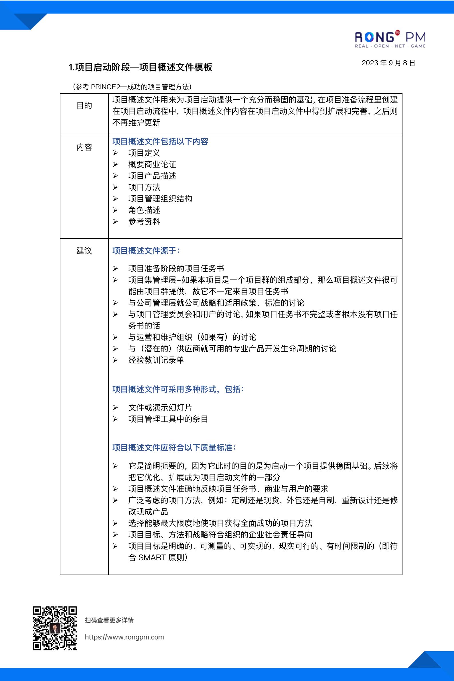 【每日一学 20230908】项目启动阶段一项目概述文件模板