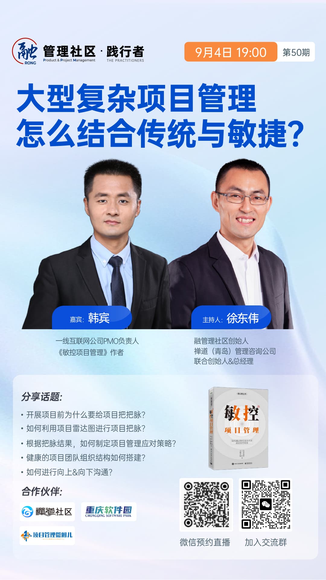 【直播预约】大型复杂项目管理怎么结合传统与敏捷?| 践行者第50期