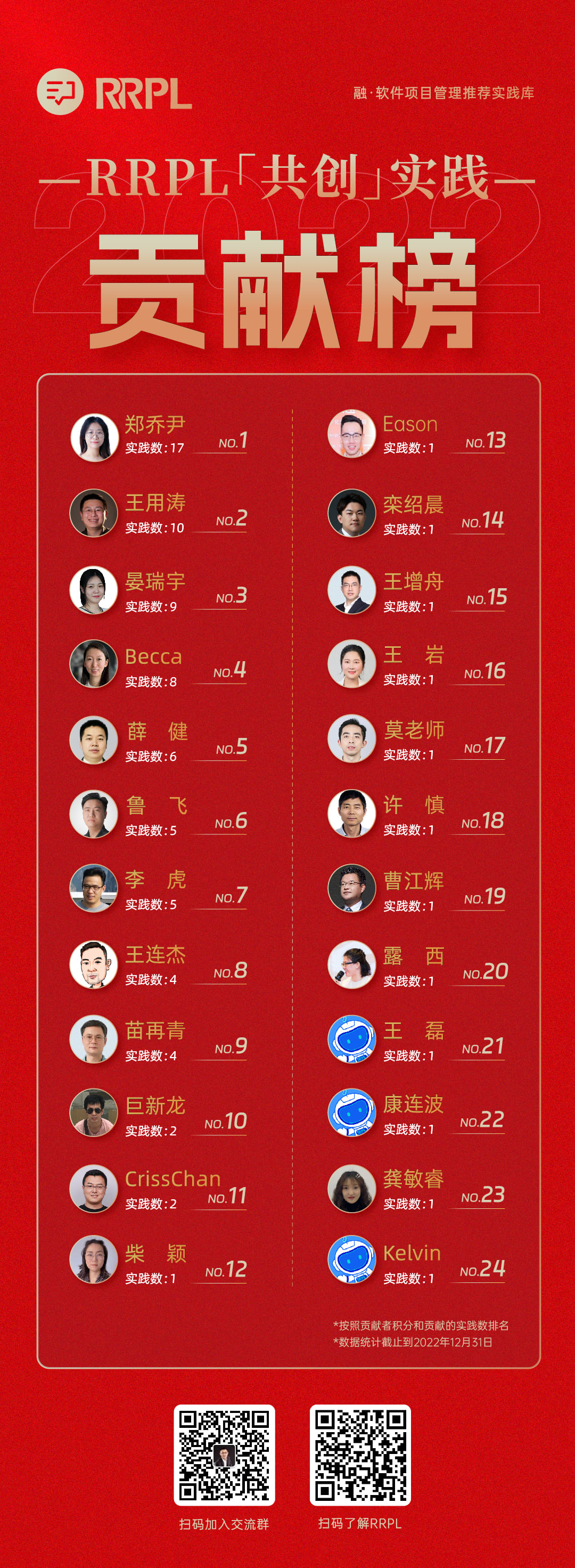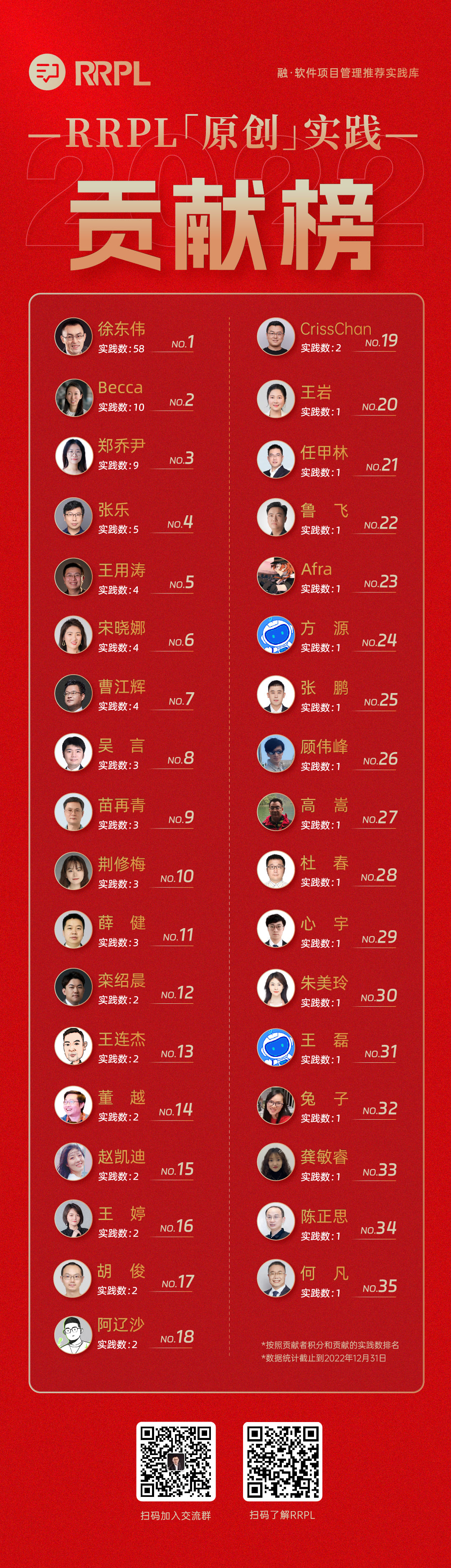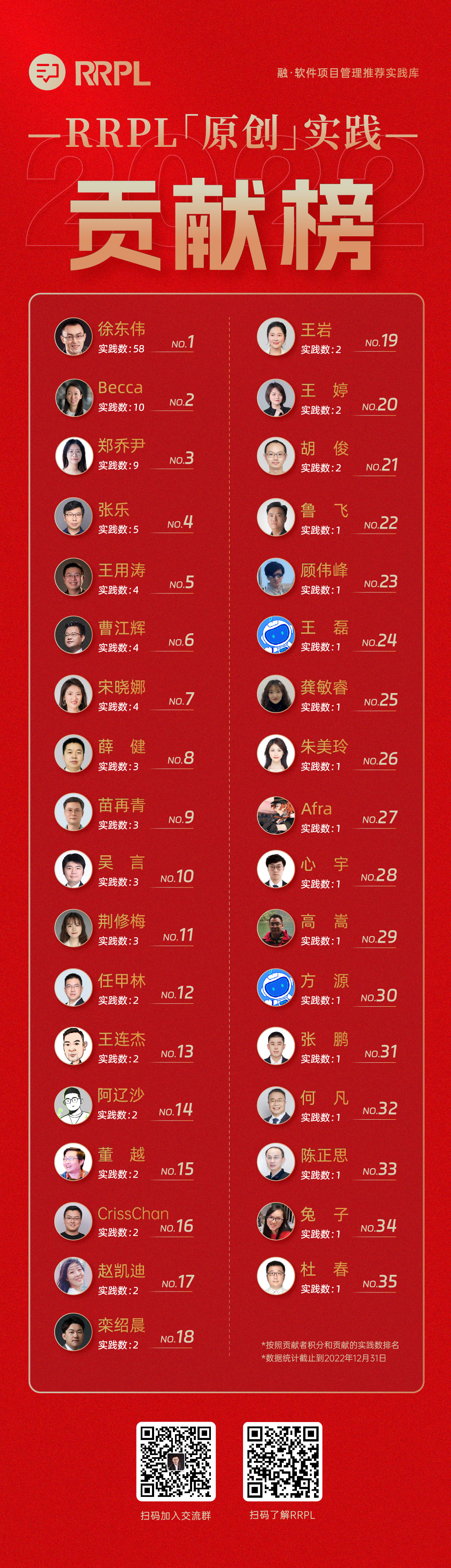 同时,小伙伴们也通过不同视角与经验不断地丰富、优化已有实践,呈现了一个个更加多元化的项目管理实践。