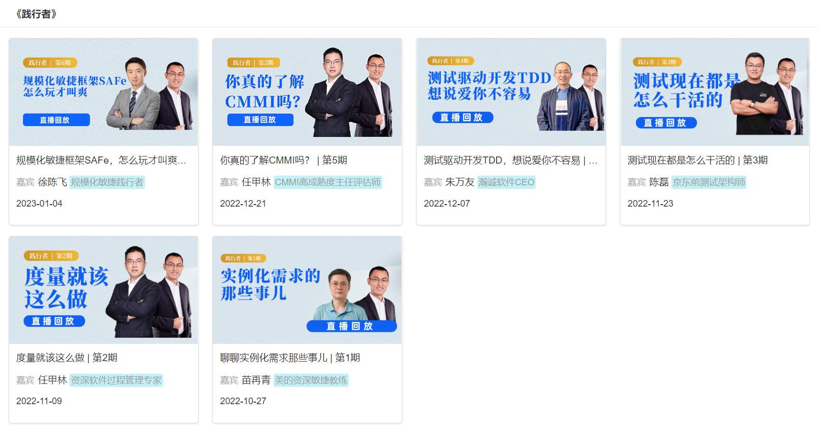 为了给大家带来最实用、最落地的项目管理实践及经验分享,我们开启了访谈直播栏目《践行者》,并在2022年顺利完成了6期直播。我们希望通过这种形式为大家带来更一线的实践经验: