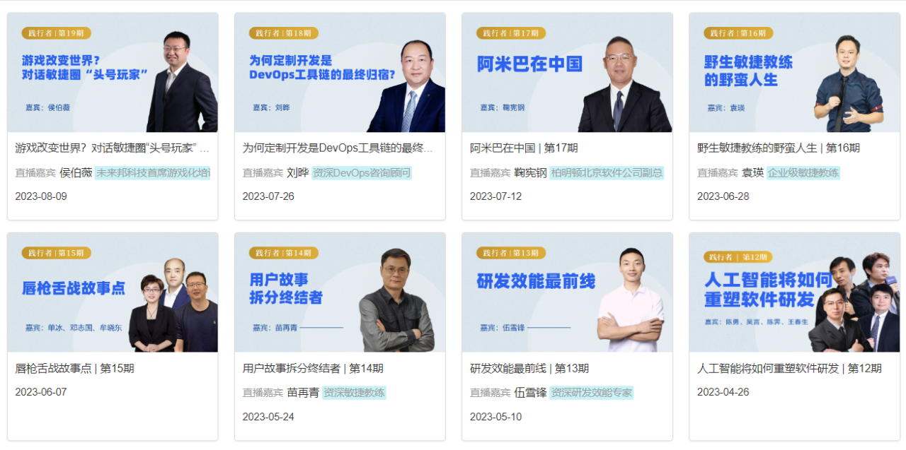 《践行者》是一档主打实战落地的访谈栏目,通过对研发实践、项目管理实践的践行者本人经历和心路历程的访谈,向大家展示真实的实践落地过程,帮助大家了解实践及其应用场景,贴近工作实际,更容易学习和使用,也更容易了解到其中的难度、窍门和坑。