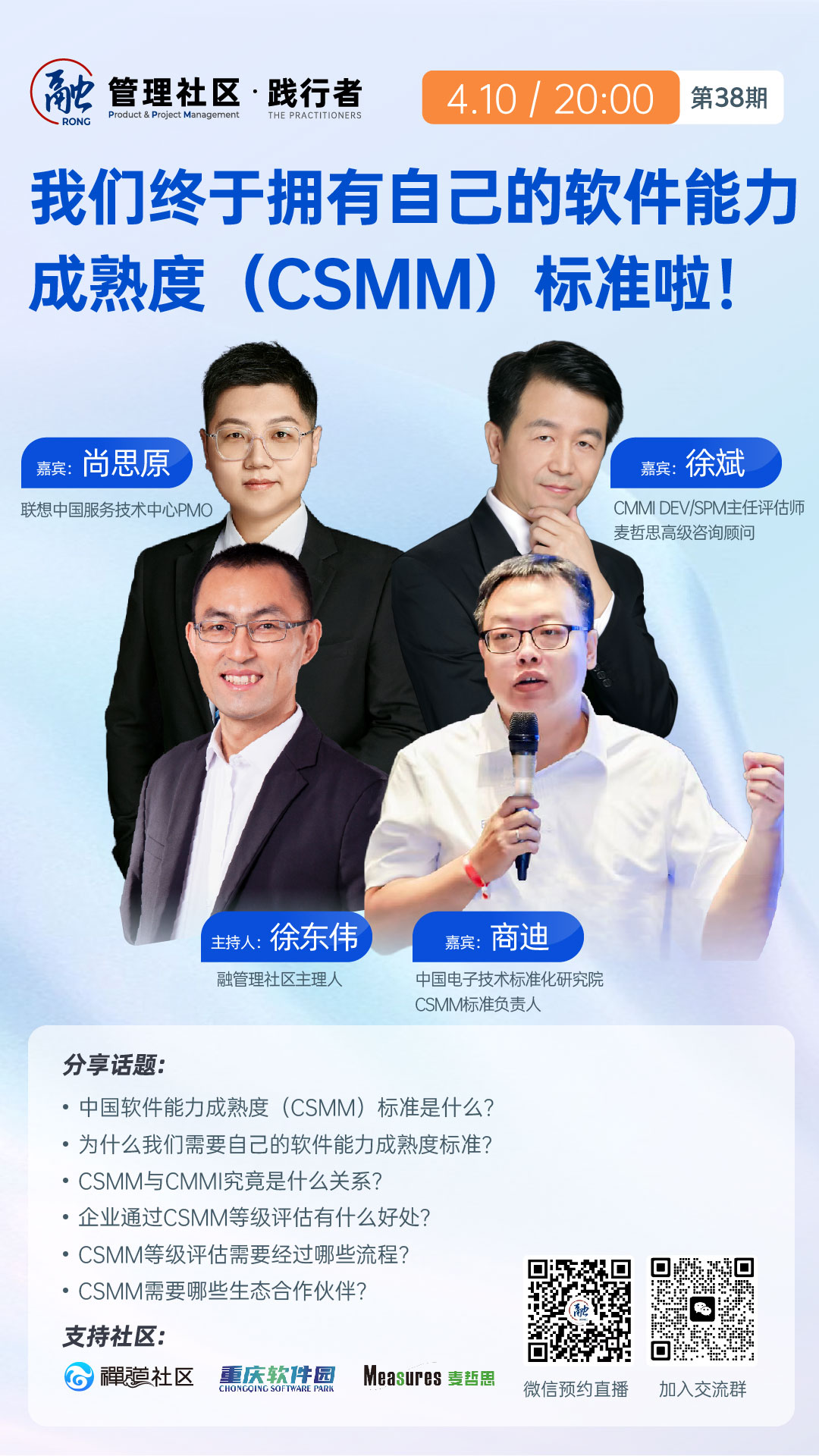 【直播预约】我们终于拥有自己的软件能力成熟度(CSMM)标准啦!| 践行者第38期