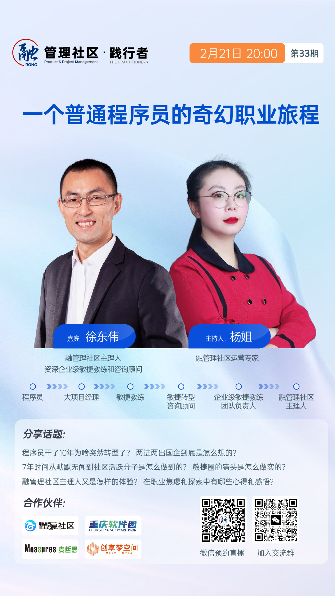 2 月 21 日(周三)晚 8 点,让我们来和融管理社区主理人徐东伟老师聊聊他的心路历程吧!