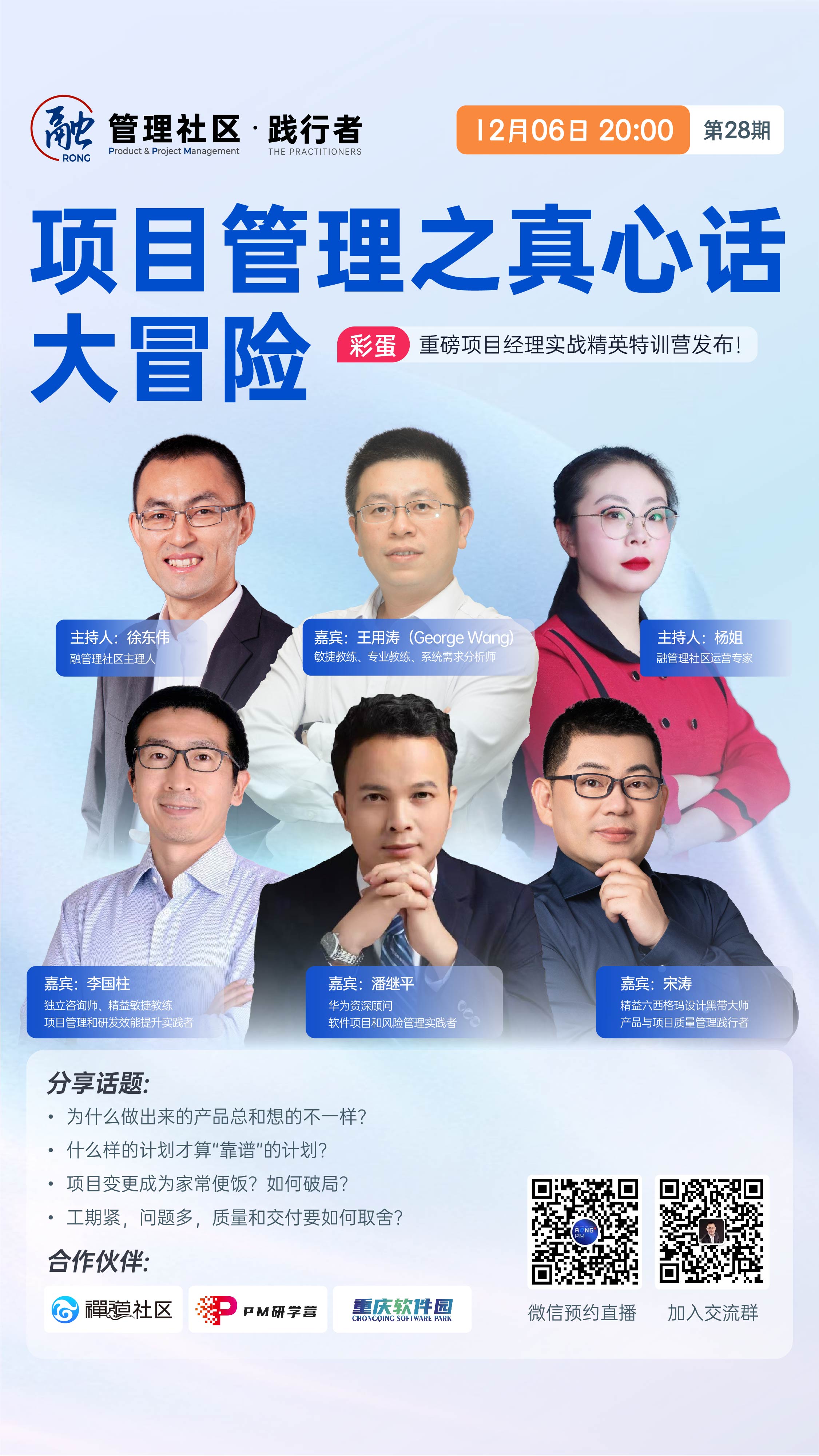 【直播预约】项目管理之“真心话大冒险” | 践行者第28期