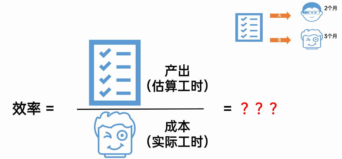 我们应该将焦点从工作量转移到效率上,即“效率=产出(需求规模)/成本(实际工时)”。