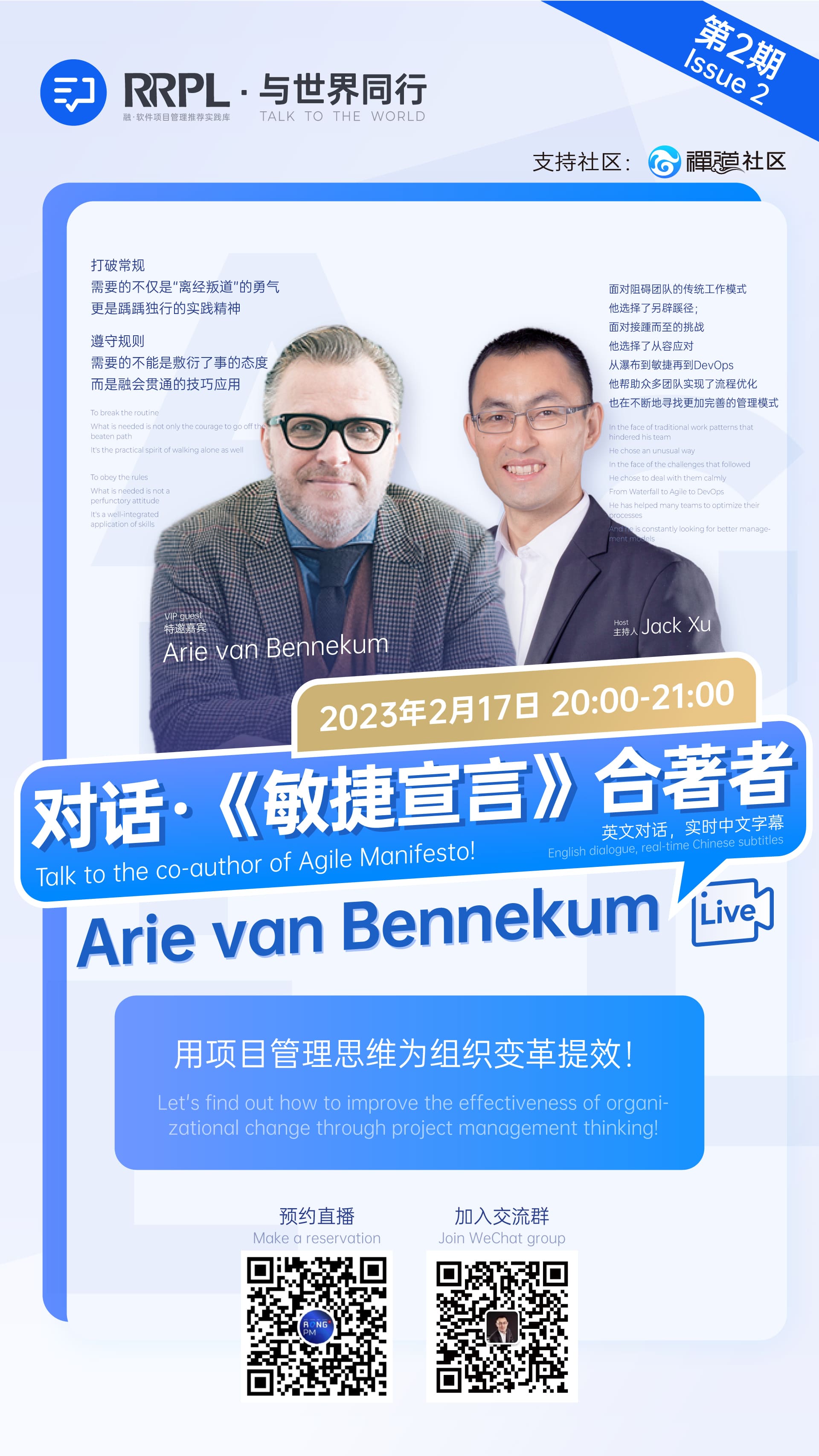 2月17日晚8点,和我们一同对话Arie van Bennekum,用项目管理思维为组织变革提效!