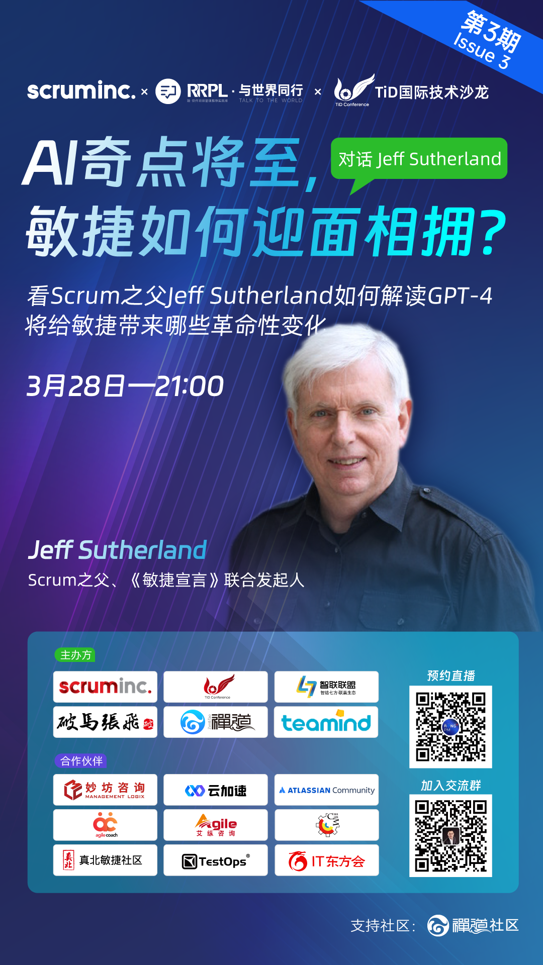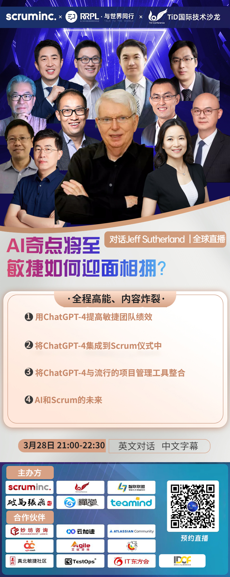 3月28日晚9点,我们将同Scrum之父、《敏捷宣言》联合发起人Jeff Sutherland一起,聊聊ChatGPT将对敏捷世界带来怎样的冲击!