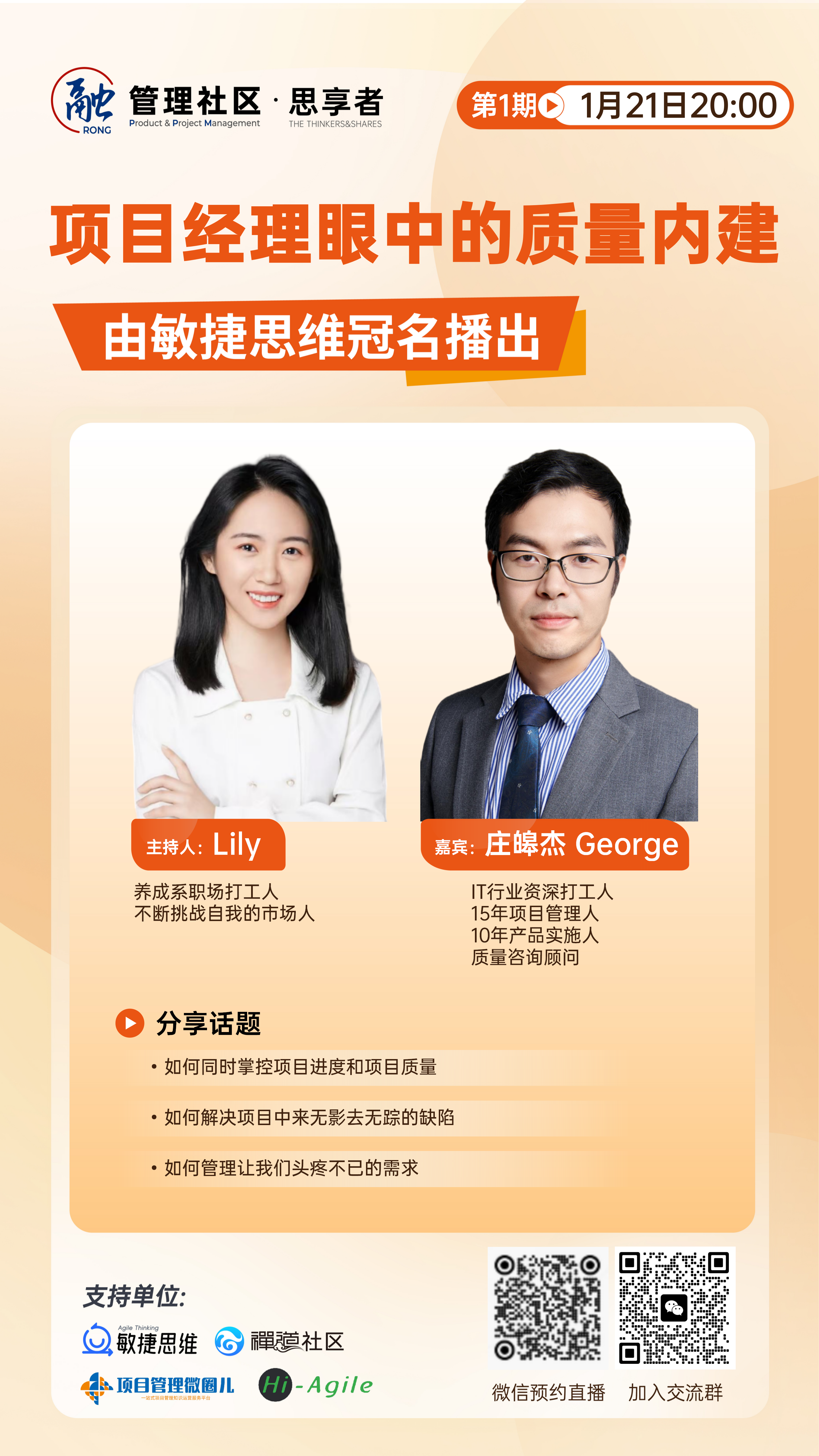 【直播预约】项目经理眼中的质量内建| 思享者第1期